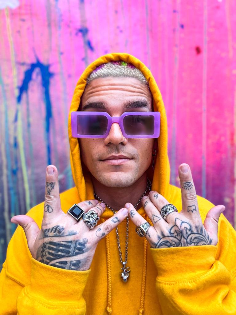 Santiago Cabezas is the visual artist a.k.a EXTi. His art is inspired by music and life experiences that drive him to create exclusive pieces, ranging from wearable art (such as sneakers, jackets, or bags), music instruments, to sculptures and original canvases.