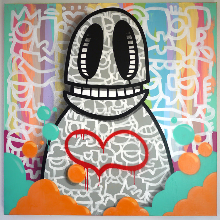 My artworks are mainly made of strong lines, figurative forms, bright vivid colors and have an emotional impact on the viewer. With my art I want to spark positivity and constructive but also critical thought about one’s self and the environment. I draw inspiration from all kinds of cultures, nature, society, graffiti and art in general, focusing on ideas like love, life, awareness and the abstraction of being.