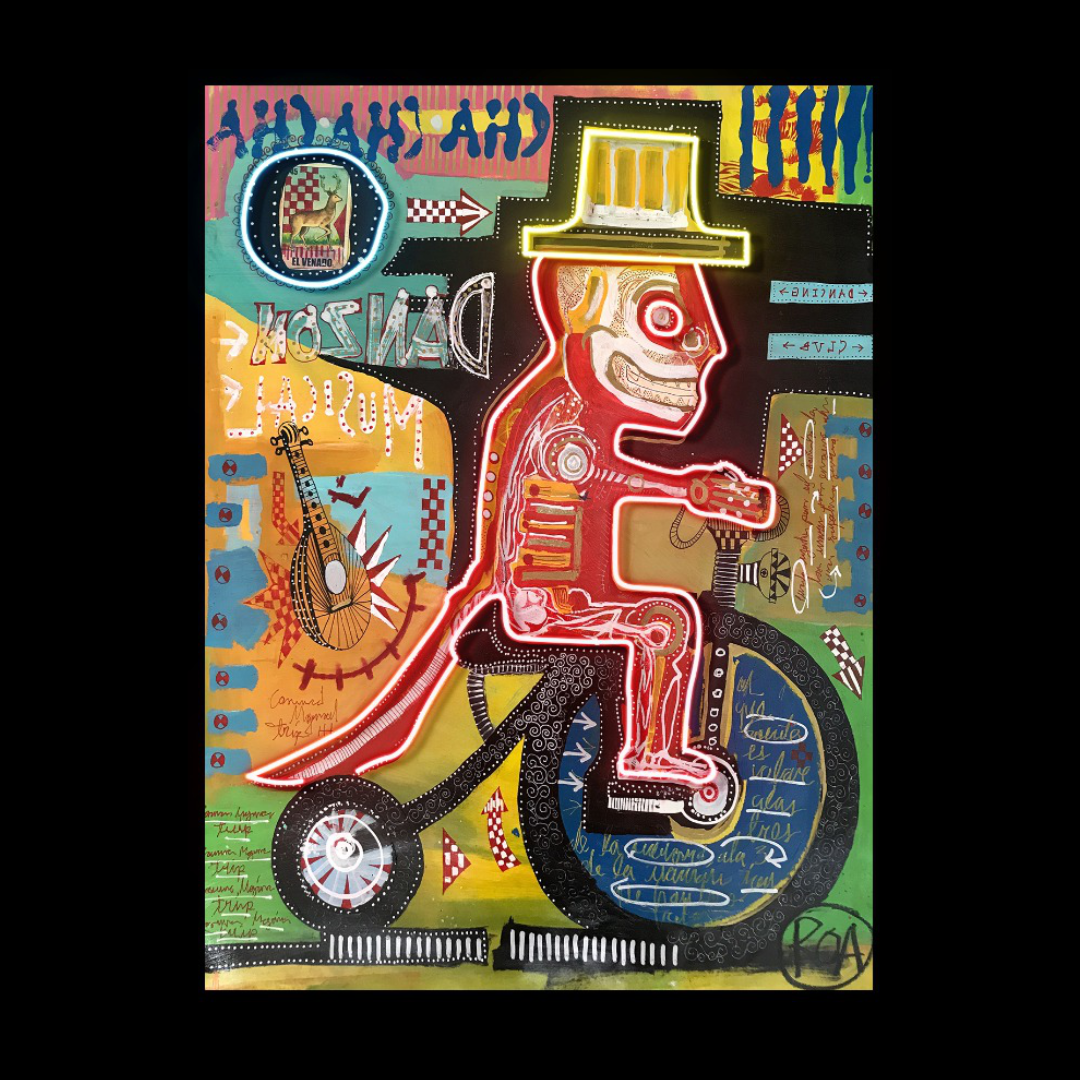 With studies at the art school in Oaxaca Mexico in his early years he has had the opportunity to exhibit in galleries and museums in Mexio, USA, Canada and some cities in Europe, as well as work on large format murals for important companies such as Warner Music Mexico