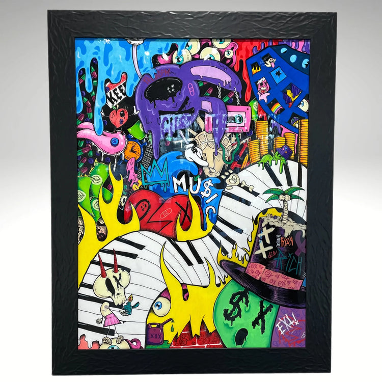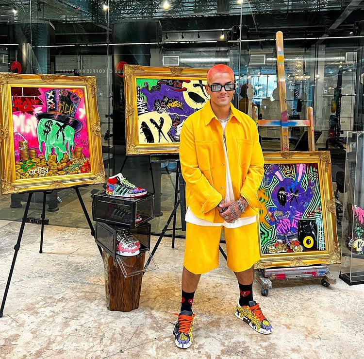 Santiago Cabezas is the visual artist a.k.a EXTi. His art is inspired by music and life experiences that drive him to create exclusive pieces, ranging from wearable art (such as sneakers, jackets, or bags), music instruments, to sculptures and original canvases.