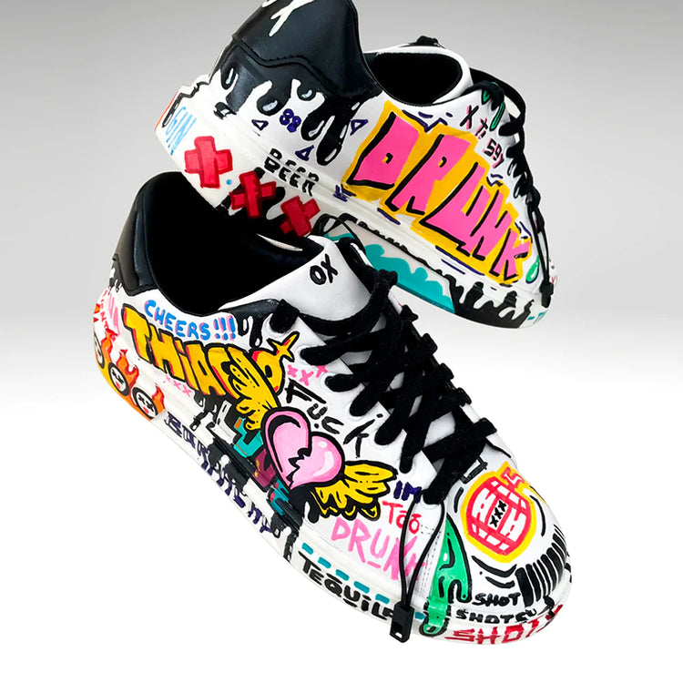 their way to selected Art Galleries in Wynwood, Miami, while he is currently gearing up to manufacture and distribute his own limited edition of sneakers aimed to consumers while still customizing wearable art for his industry colleagues.