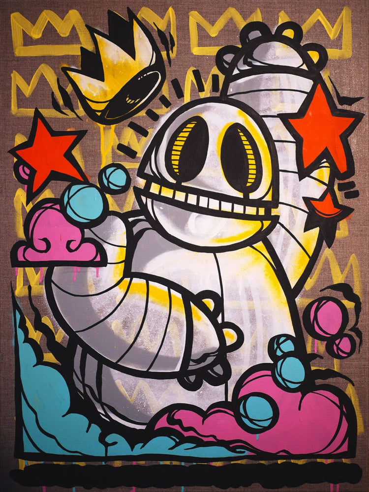 My artworks are mainly made of strong lines, figurative forms, bright vivid colors and have an emotional impact on the viewer. With my art I want to spark positivity and constructive but also critical thought about one’s self and the environment. I draw inspiration from all kinds of cultures, nature, society, graffiti and art in general, focusing on ideas like love, life, awareness and the abstraction of being.